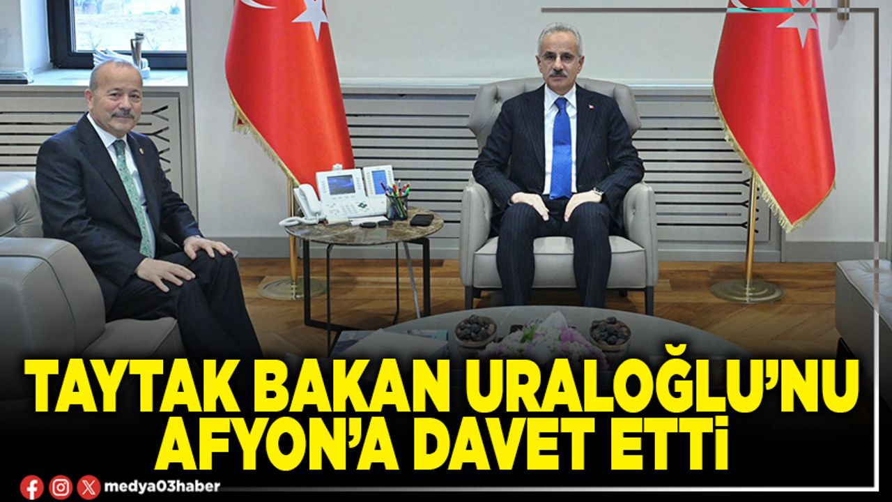 Ziyaret kapsamında Milletvekili Taytak, Afyonkarahisar’a kazandırılan önemli hizmetler dolayısıyla Bakan Uraloğlu’na teşekkürlerini iletti. Özellikle bölge ulaşımı açısından büyük önem taşıyan ve yapımı tamamlanan Emirdağ–Çay–Bolvadin yolunun şehrin ulaşım altyapısına ciddi katkı sağlayacağını ifade eden Taytak, söz konusu yolun açılış programına Bakan Uraloğlu’nu davet etti.