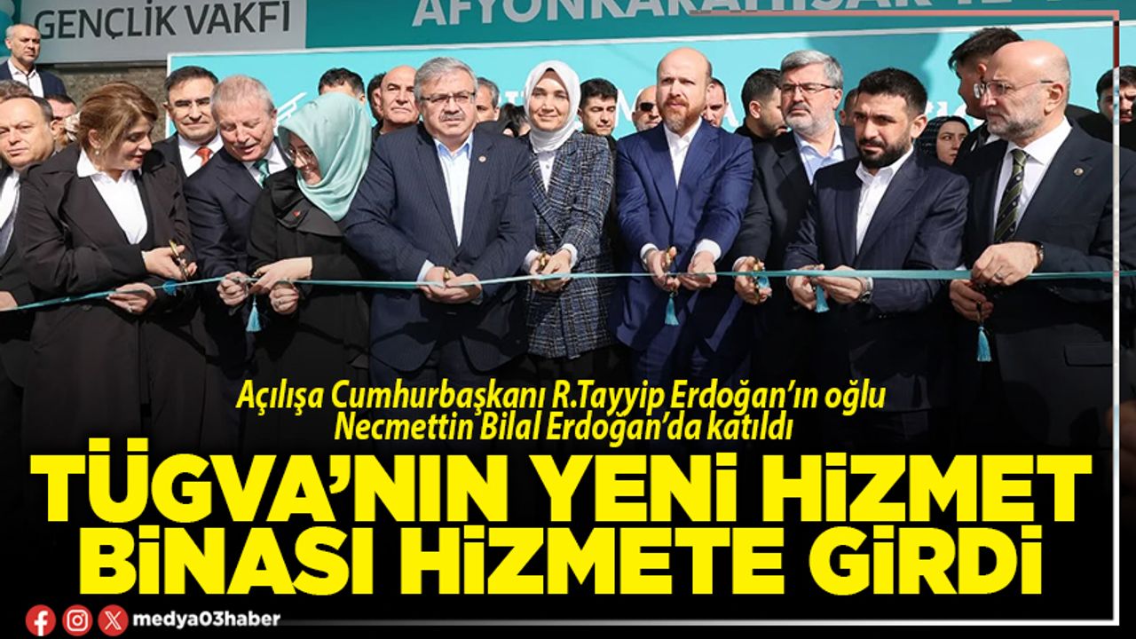 TÜGVA Afyonkarahisar İl Temsilciliği yeni hizmet binası düzenlenen törenle hizmete girdi. Açılış törenine; Vali Doç. Dr. Kübra Güran Yiğitbaşı, AK Parti Milletvekilleri, Cumhurbaşkanı R.Tayyip Erdoğan’ın oğlu Türkiye Gençlik Vakfı (TÜGVA) Yüksek İstişare Kurulu Üyesi Necmettin Bilal Erdoğan, TÜGVA Genel Başkan İbrahim Beşinci protokol üyeleri, STK temsilcileri, vakıf üyeleri ve vatandaşlar katıldı.