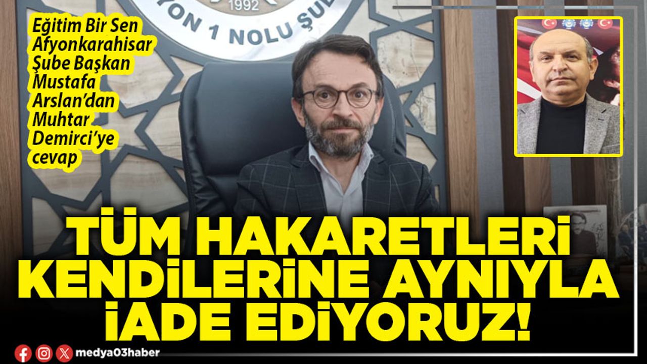 Türk Eğitim Sen Şube Başkanı Muhtar Demirci dün Hocalar ilçesinde yaşanan bir olayla ilgili çok ciddi iddialar ortaya atarak Eğitim Bir Sen Afyonkarahisar Şube Başkan Mustafa Arslan ve yardımcısıyla ilgili zehir zemberek açıklamalarda bulundu. Bugün basın toplantısı düzenleyen Arslan iddialara cevap verdi.