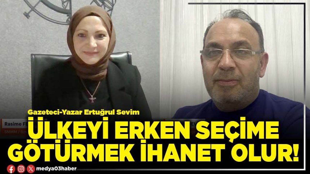 Bölgede ve Dünyada yaşanan savaşlardan dolayı Türkiye’de erken seçim kararı alınmasının ülkeye ihanet olacağını ifade eden Gazeteci Sevim şunları söyledi: “Ben 2026'da mevcut strateji pozisyonumuzda! Bölgedeki, dünyadaki savaşlardan kaynaklanan ekonomik krizlerden, enerji krizinden kaynaklanan bu durumda ülkeyi seçime götürmenin ihanet olduğunu düşünüyorum. Cumhurbaşkanı dahi seçime götüreceğim dese ihanet eder. Şu anda Türkiye bir seçim tercihine sokulamaz. Nedeni şu: İran'la ABD arasındaki ve körfeze yayılacak savaşın, Türkiye'ye 4 tane füze atılmışsa ve enerji krizi Dünyada baş göstermeye başlamışsa! Bu aşamada mevcut hükümetin tedbir alarak yoluna devam etmesi gerekir. Burada bir seçim kararı alınamaz, alınmaması lazım. Hükümetin de alacağını düşünmüyorum. Ama! 2026'da bu işler durulur, 2027’de ekonomi biraz daha iyi olur zaten Tayyip Erdoğan ve AK Parti bir anayasa değişikliği ile beraber seçim kararı isteyecektir. Çünkü Tayyip Erdoğan son bir defada aday olmak istiyor.”