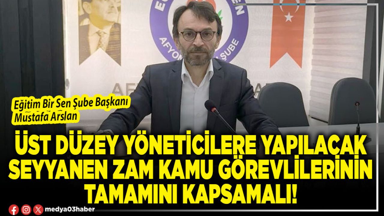 Kamuoyunda tartışmaya neden olan üst düzey düzey yöneticilere 30 Bin TL.ye varan seyyanen zam tasarıyla ilgili açıklamada bulunan Eğitim Bir Sen Şube Başkanı Mustafa Arslan, düzenlemenin tüm kamu görevlilerini kapsayacak şekilde genişletilmesinin gerektiğini söyledi.
