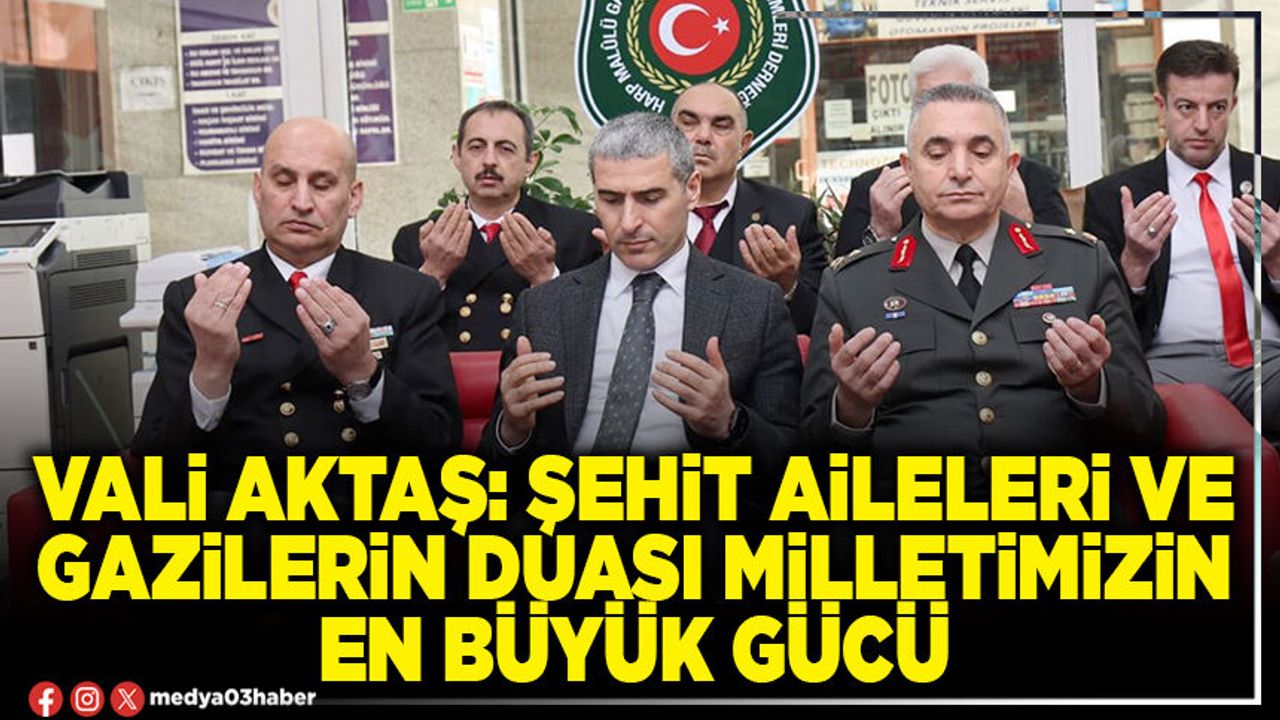 Burada şehit ailelerimiz ve kahraman gazilerimizle bir araya gelen Vali Aktaş, devletimizin her zaman şehit ailelerimizin ve gazilerimizin yanında olduğunu vurgulayarak; onların duasının, milletimizin en büyük gücü olduğunu ifade etti.