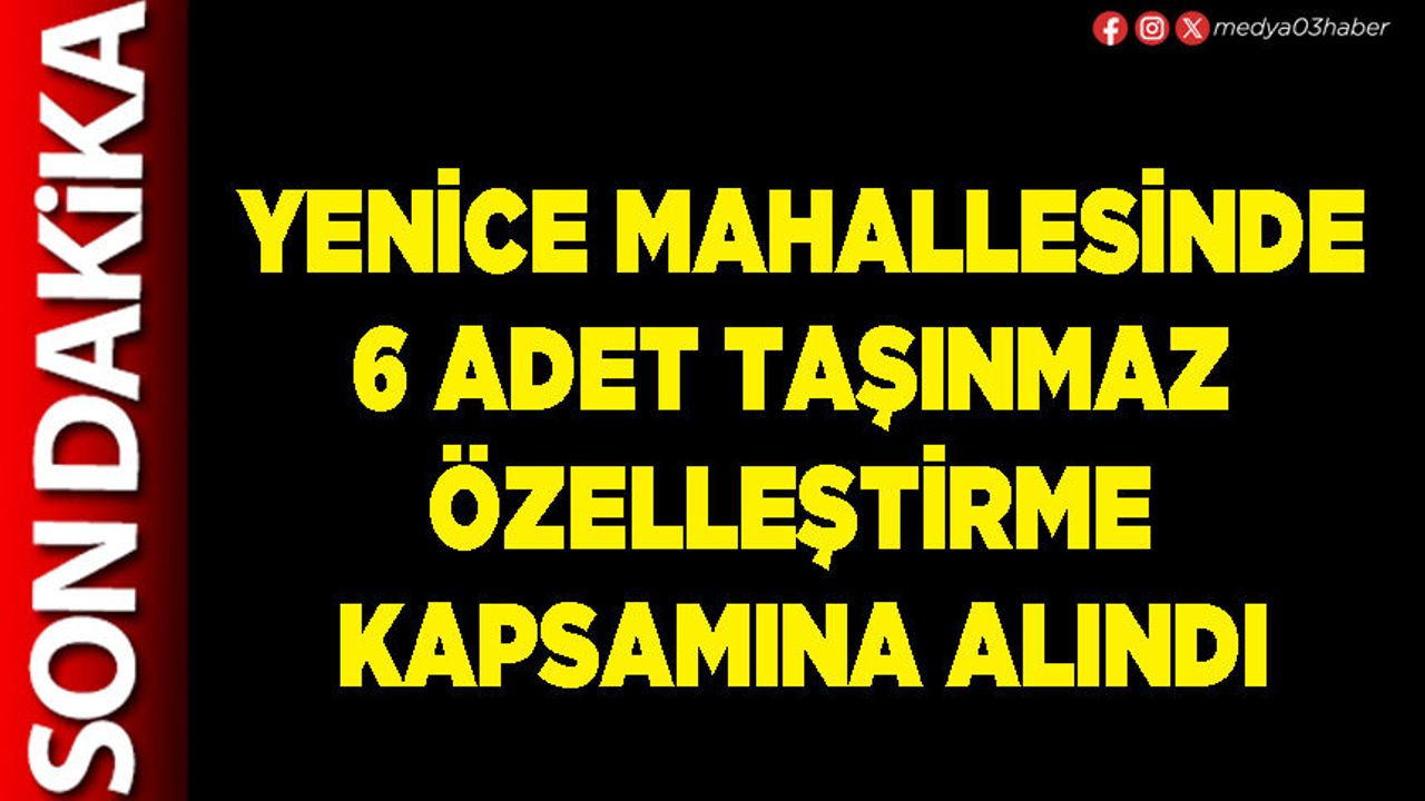 Afyonkarahisar’ın Yenice Mahallesinde Karayolları Genel Müdürlüğü adına kayıtlı 6 adet taşınmaz Resmi Gazetede bugün yayımlanan kararnameyle özelleştirme programına alındı.