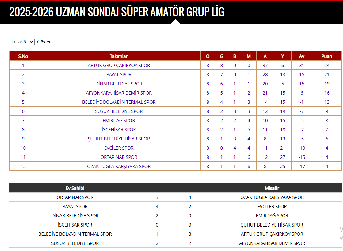 Dinarspor bu galibiyetle puanını 19’a yükselterek zirve yarışını sürdürürken, Emirdağspor ise art arda ligde 2. yenilgisini alarak 8 puanda kaldı.